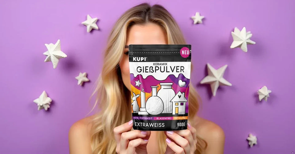 Alle Gießpulver auf Keramik- oder Gipsbasis sind nicht für den dauerhaften Einsatz bei hohen Temperaturen oder direkten Kontakt mit Feuer geeignet.💡 Mit KUPI Gießpulver könnt ihr natürlich trotzdem wunderschöne Kerzenhalter gestalten. Wir möchten jedoch aus haftungsrechtlichen Gründen darauf hinweisen, dass wir keine Garantie für die Hitzebeständigkeit oder Sicherheit im direkten Kontakt mit Flammen übernehmen können.